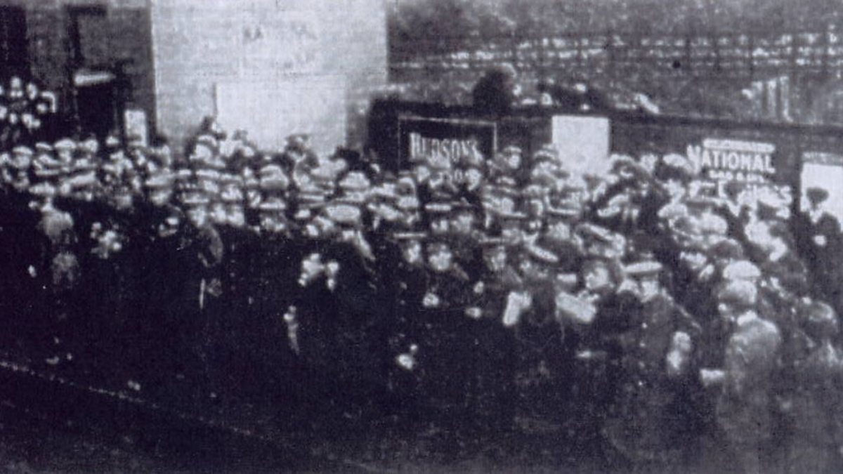 They marched off from St John the Baptist Church in Hugglescote to the train station in Coalville, with thousands lining the streets to wave them off and singing songs in a show of patriotic fervour.