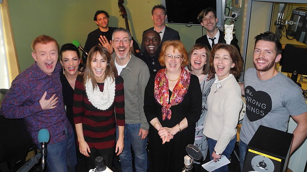 Caro Emerald and her band serenade Chris and Griff Rhys Jones.