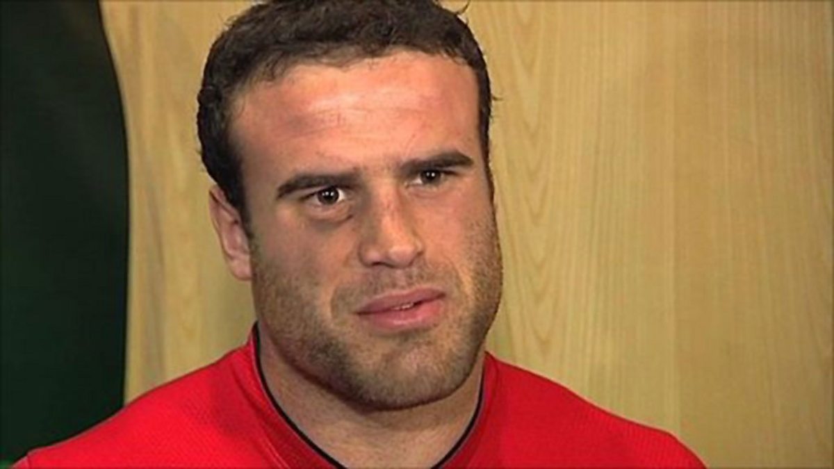 Jamie Roberts yn sgwrsio gyda Huw Llywelyn Davies cyn gêm Iwerddon.