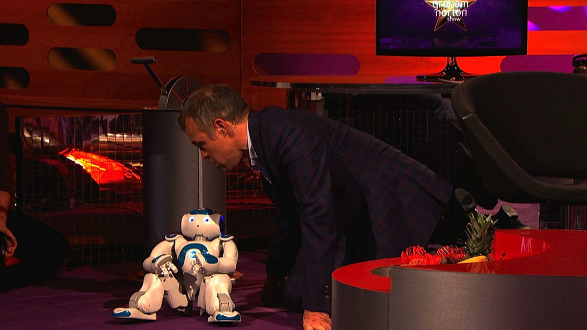 Graham forms an attachment to a toy robot that will follow you and dance to Gangnam Style