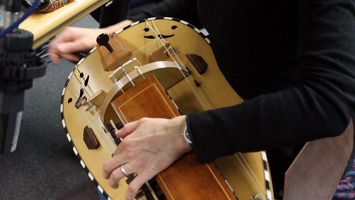 Clare brought along her Hurd Gurdy and Nyckelharpa to the Midweek studio.