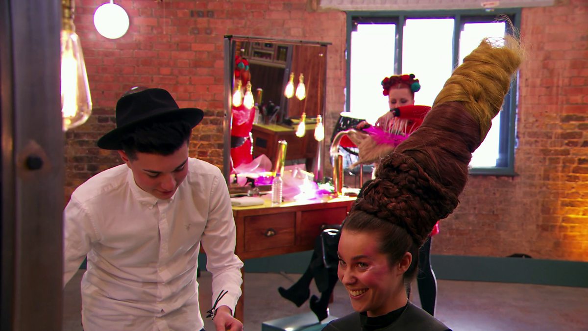 With just 30 minutes left to go, Steve Jones chats to Kobi, who's making a 'unicorn horn', and Dominika who's working on her eccentric 'Thumbalina in a flower' creation.