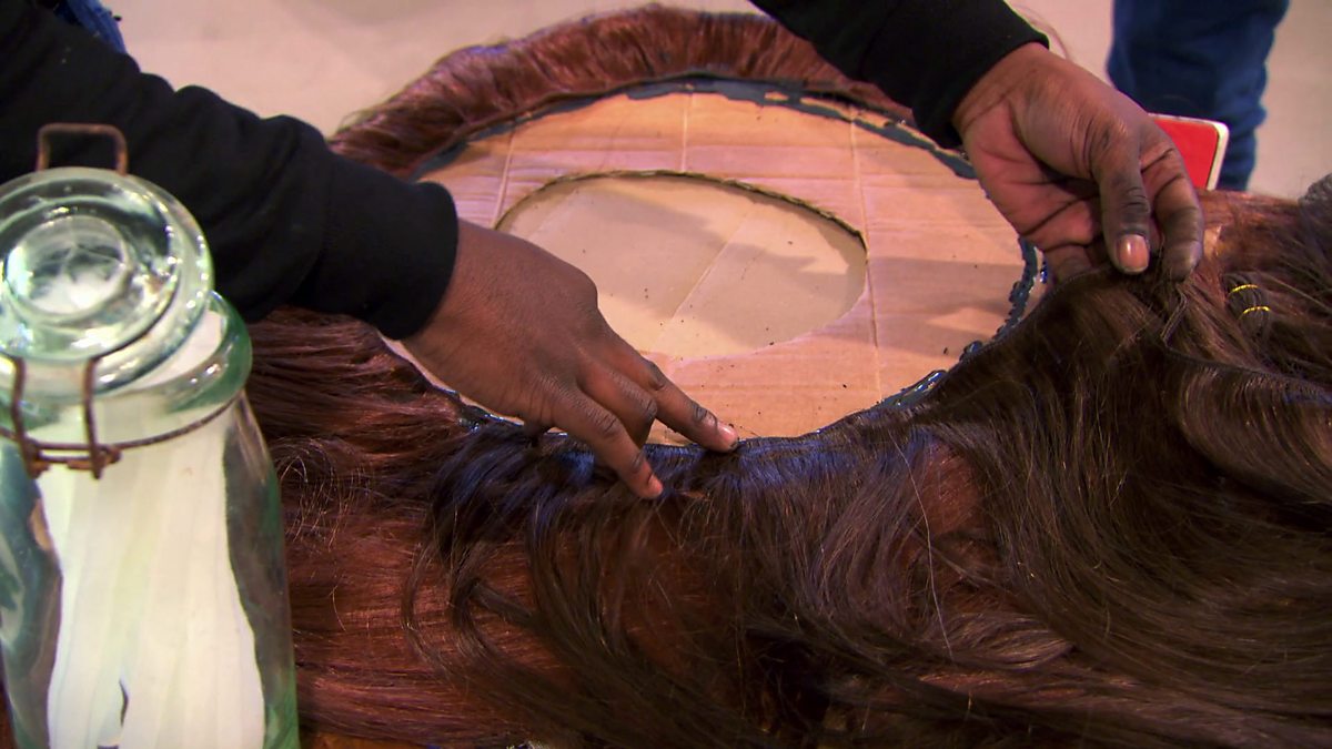 In the hats out of hair round, Steve Jones chats to Marvin about his mad hatter meets Miami sun hat, and Kobi finds out that rival Laura is also making a button hat.