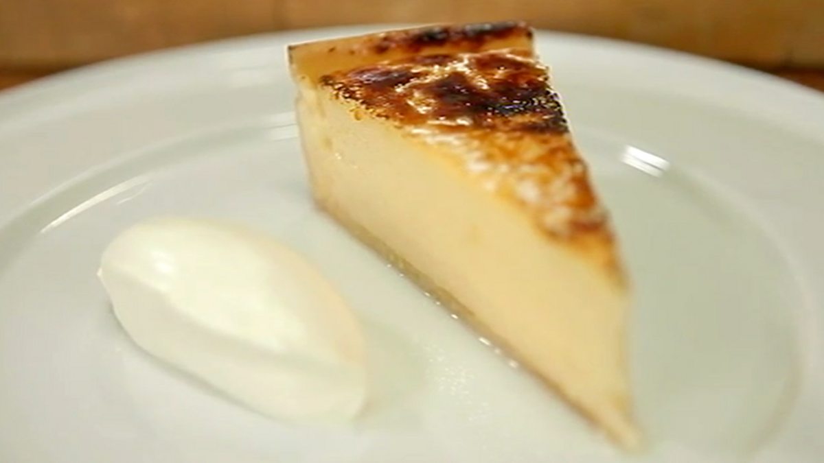 The classic lemon tart served with a glazed top and a dollop of crème fraîche.
