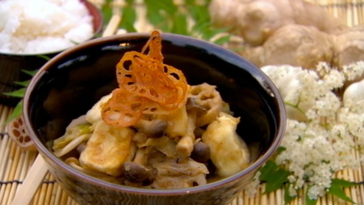 The Hairy Bikers got their inspiration for this dish from the Buddhist vegetarian cookery of Japan. It¹s a celebration of Kyoto¹s tofu culture. The Japanese aubergines used in the dish are longer and thinner than the ones we usually use.
