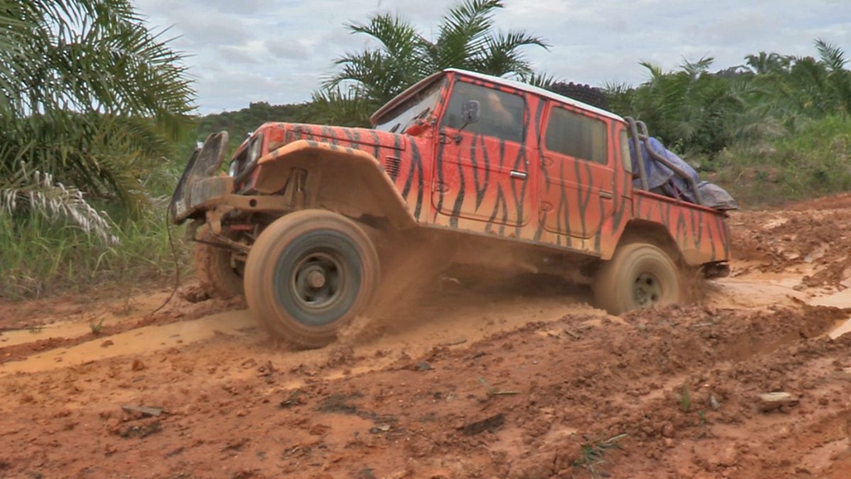 Monster trucks get stuck in the mud trying to get the crew back to civilisation.