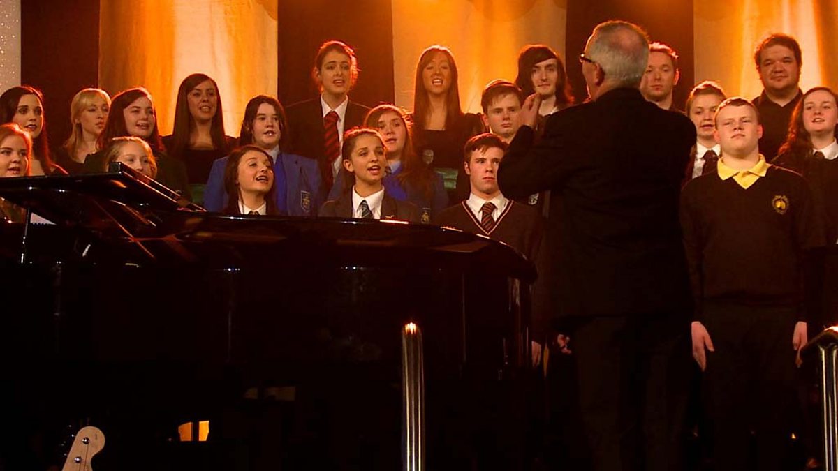 The choir with Donal Doherty, Neil Cowley and the house band directed by Frank Gallagher