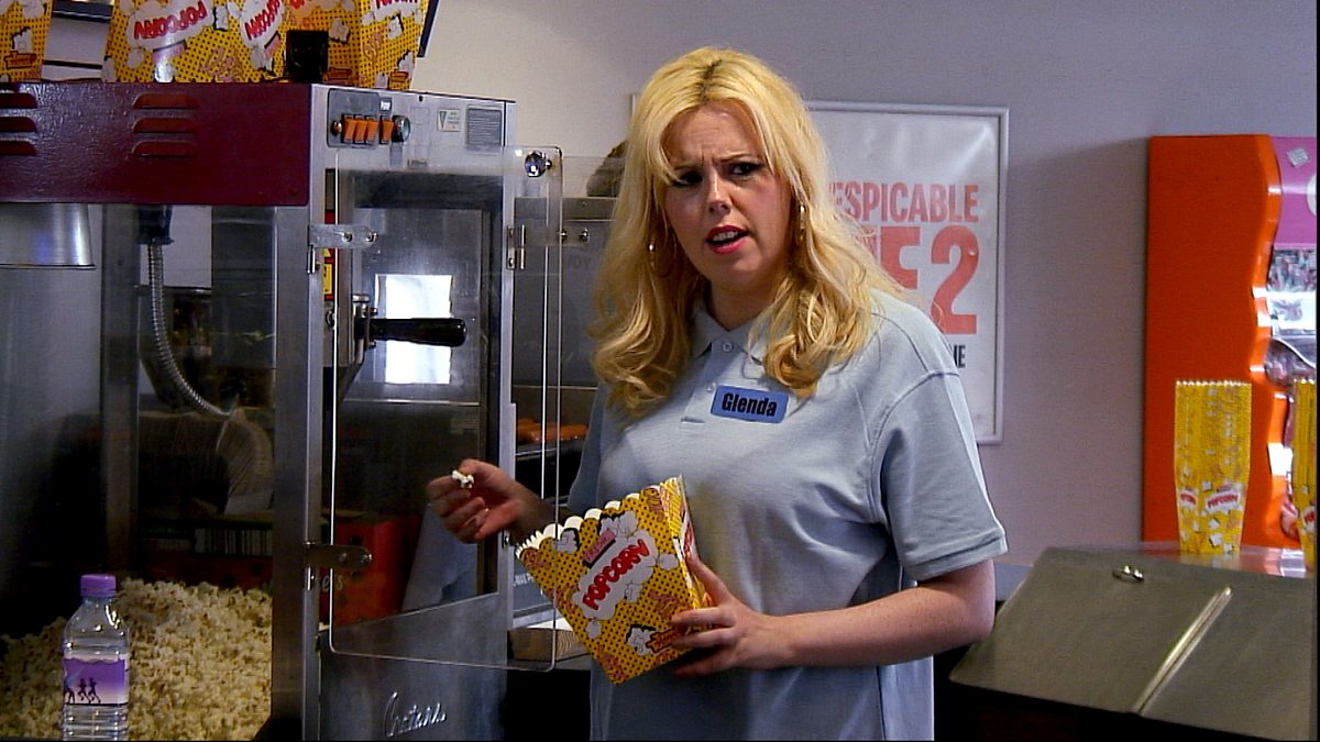 The Impractical Jokers are working in a cinema, and have to do and say everything the other Jokers tell them through a hidden ear piece.
