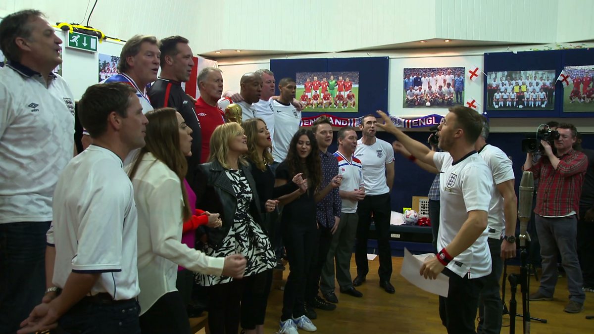 Gary Lineker gathers together some of his celebrity friends to record the world cup song.