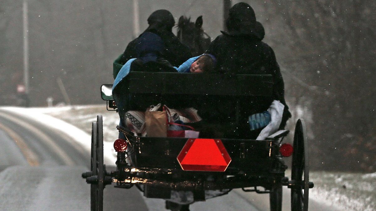 Photo: A young boy is covered in a blanket as he rides in the back of a Amish buggy during a snowfall in January 2014. (Mark Wilson/Getty Images)