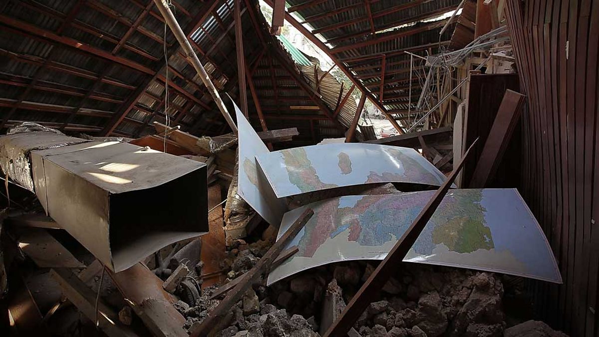 (Photo: A fallen map of Haiti lies in the ruins of the Ministry of Public Works, Credit: John Moore/Getty Images)