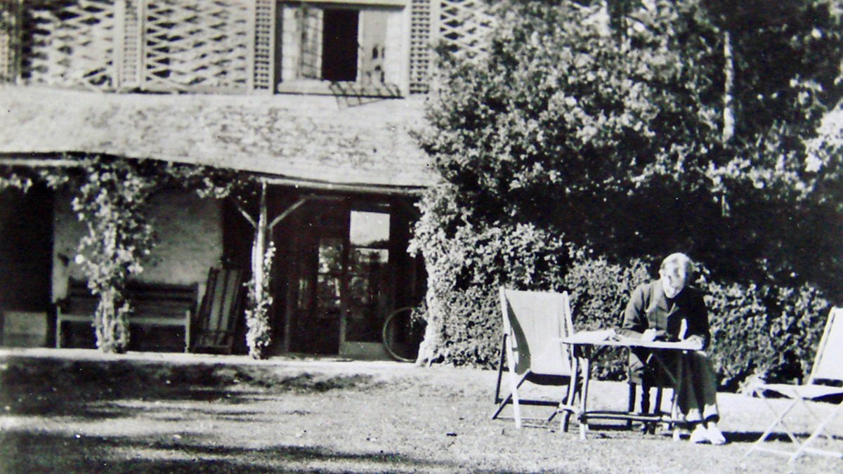 Image of Rupert Brooke writing in the garden of the Old Vicarage, Grantchester, courtesy of Lorna Beckett from Rupert Brooke Society