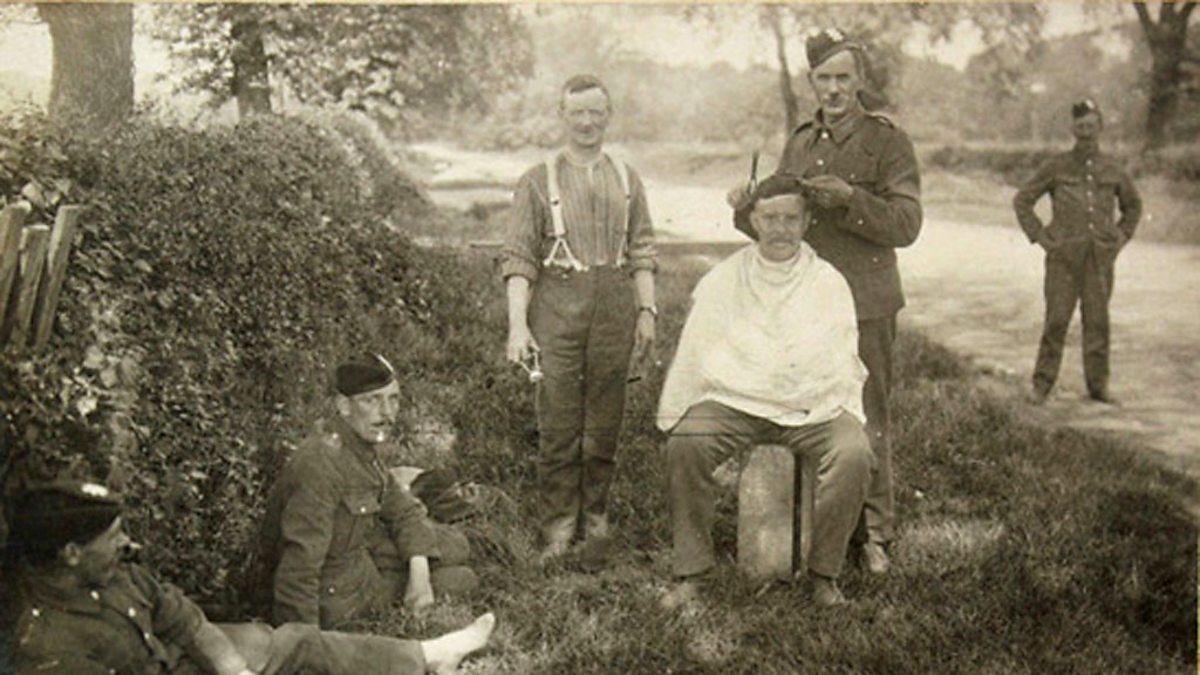 As well as posed shots of soldiers training in the area, there are a number of candid shots of soldiers relaxing. There are pictures of soldiers ‘cutting corns’ from the feet of their comrades, having their hair cut by each other at the roadside and swimming in local rivers.