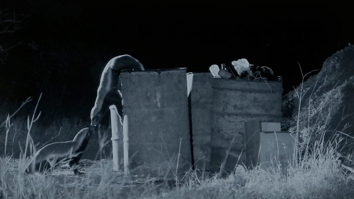 Scientist Low de Vries introduces us to two night-time bin raiding honey badgers.