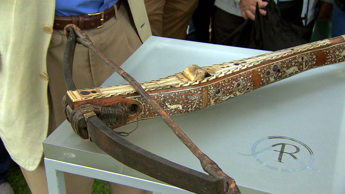 A beautifully decorated, Southern German crossbow made in the 1600s.