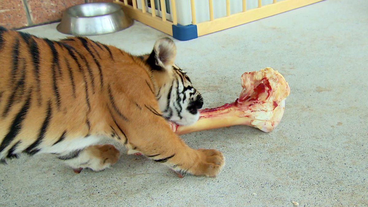 The cubs are chewing their way through the house, so Giles gives them something really meaty to chew on - giant beef bones.