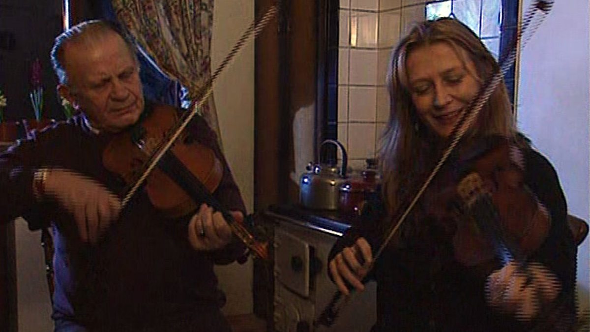 Mairead Ni Mhaonaigh talks about music and coming from Donegal, and plays the fiddle with some local musicians, including Paul Brady.