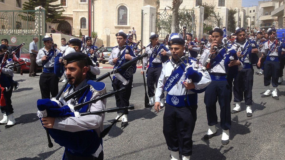 John also hears from Bethlehem’s bagpipers as they prepare to honour a tradition that goes back to the British mandate – to parade with pipes and drums in Jerusalem on Palm Sunday.