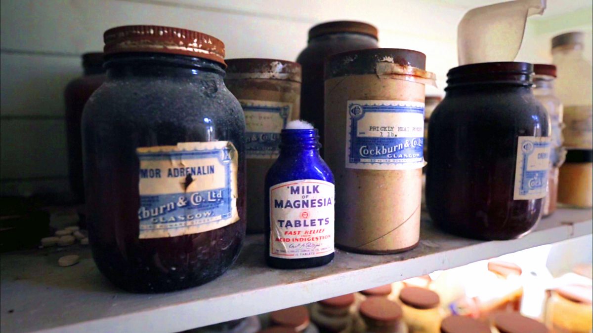 The whaling station hospital had to be stocked with everything that might be needed on this remote island. Adam finds a remarkable pharmacy, abandoned since the 1960s.