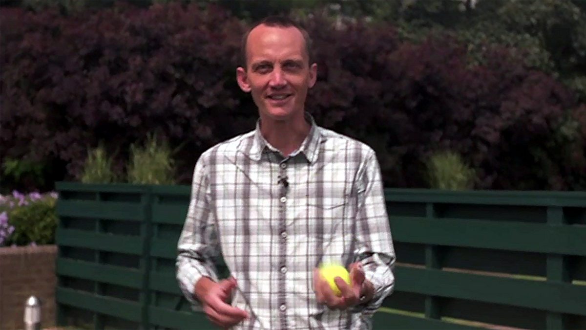 BBC tennis correspondent Russell Fuller attempts the Copa-uppy challenge: keepie-uppies with a tennis ball.