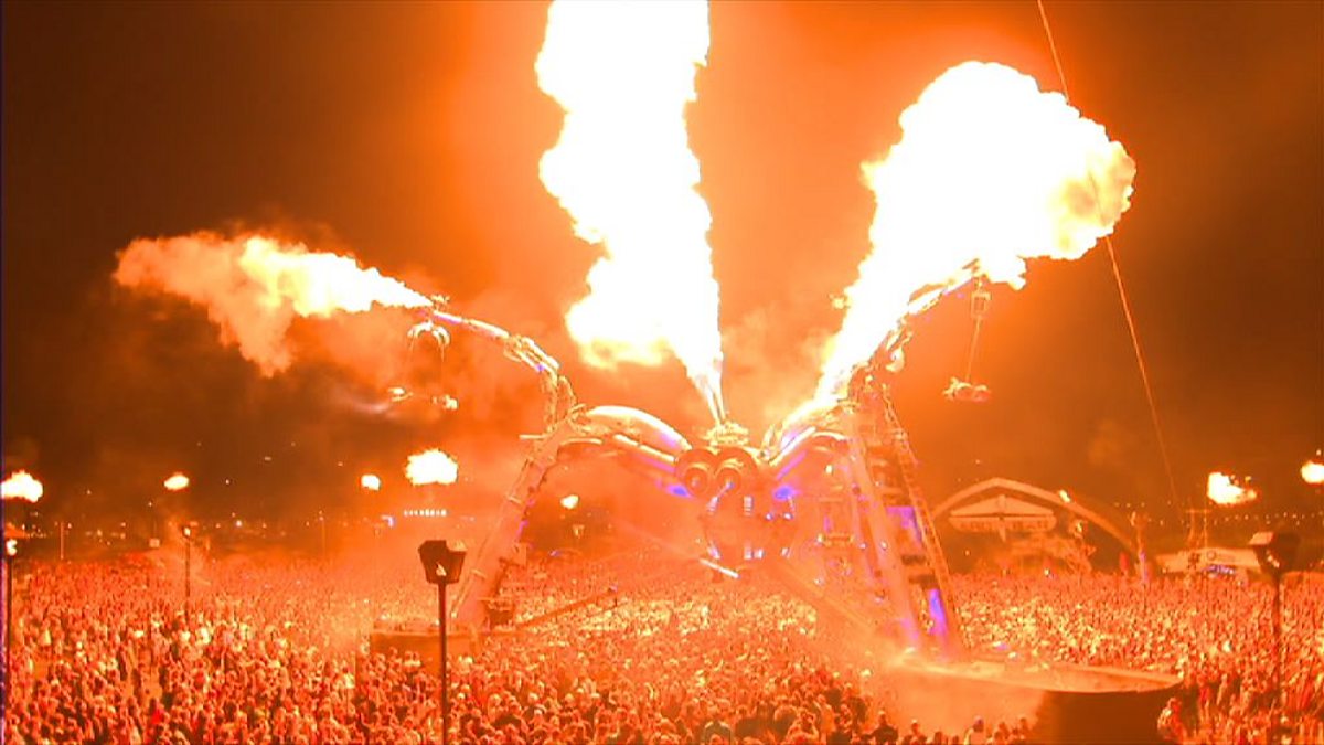 What happens at Arcadia at Glastonbury. Arachnophobes avoid this place.