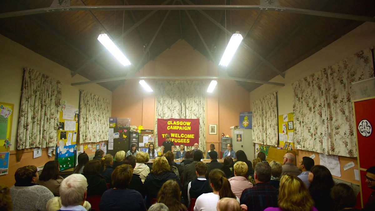 The girls hold a community meeting to publicise the plight of asylum seekers