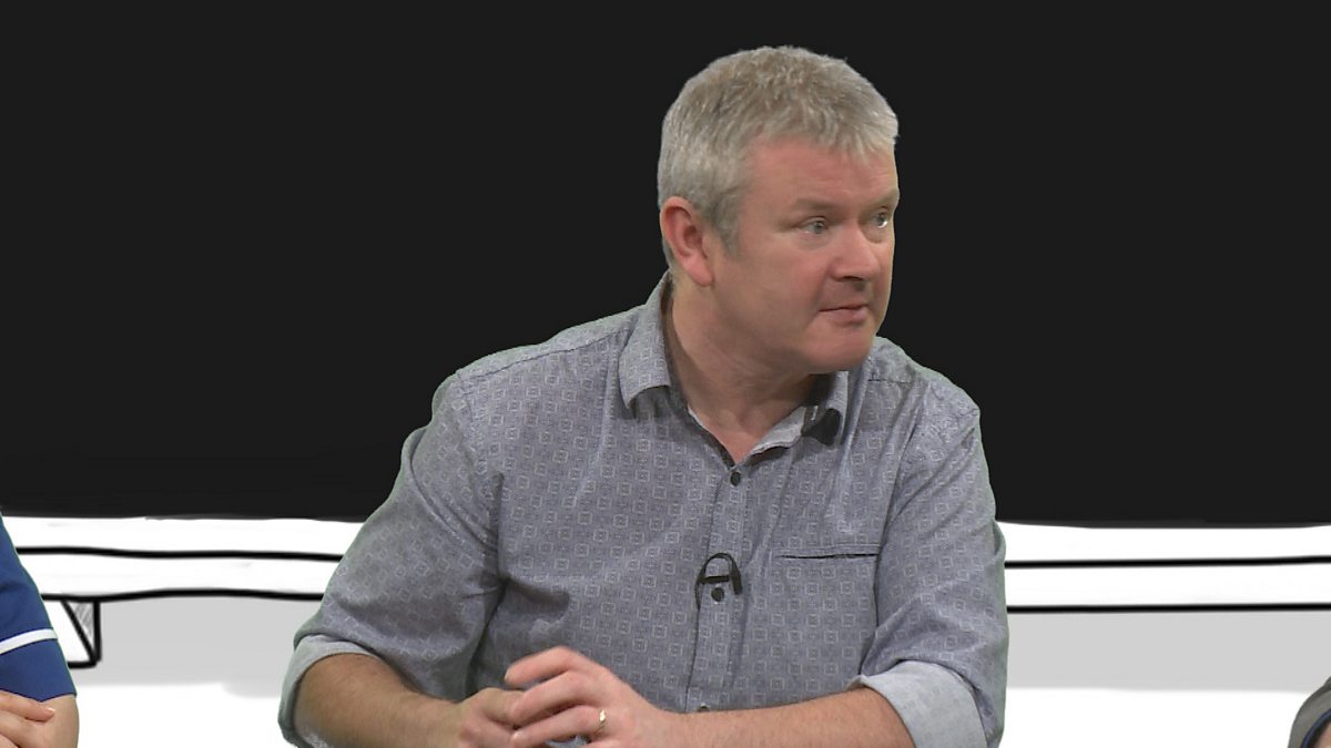 Fearghal discusses various subjects with Jenny, Éamann, Sorcha and Alastar.