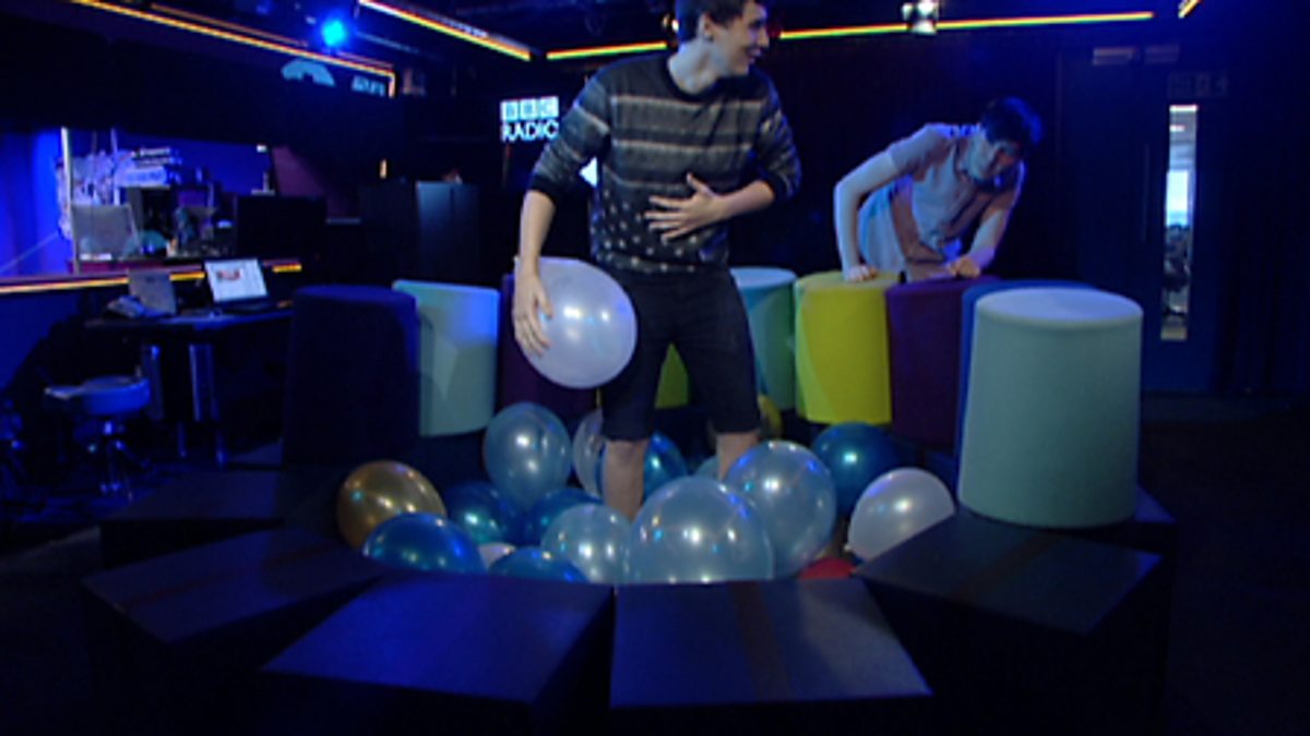 The ultimate balloon showdown in Dan Vs Phil - a one-handed balloon pop off!