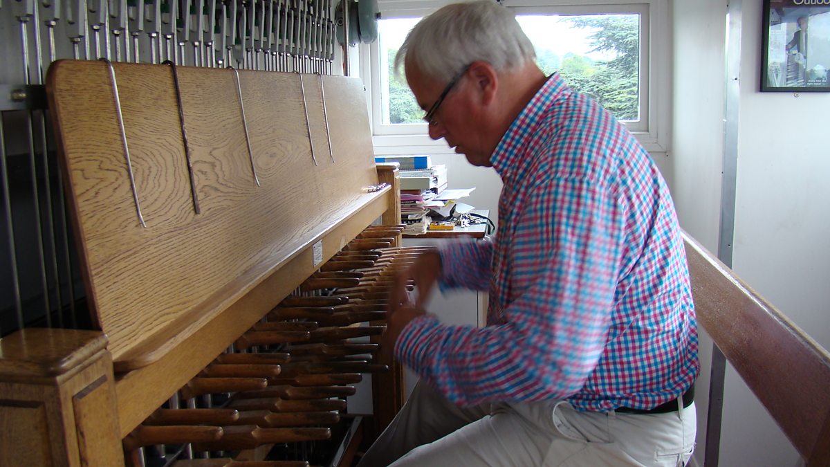 • Trevor Workman, Carilloneur, playing a tune on the Bournville Carillon