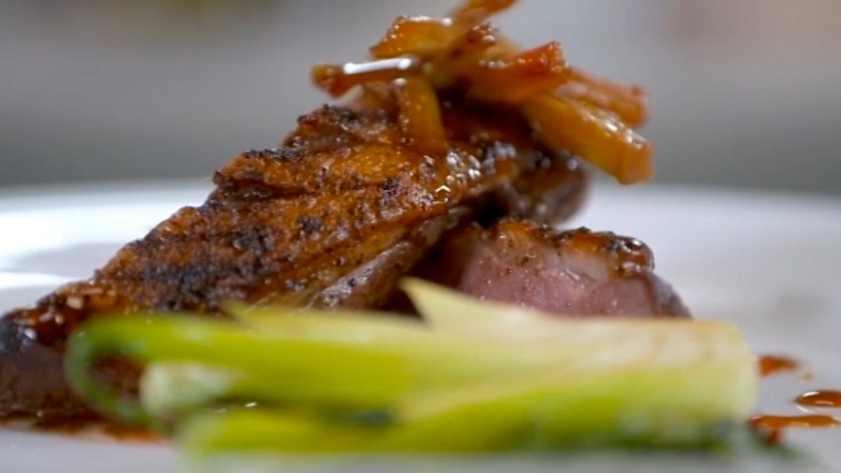 Rhubarb works wonderfully with the richness of duck and Chinese spices in this gourmet dish.