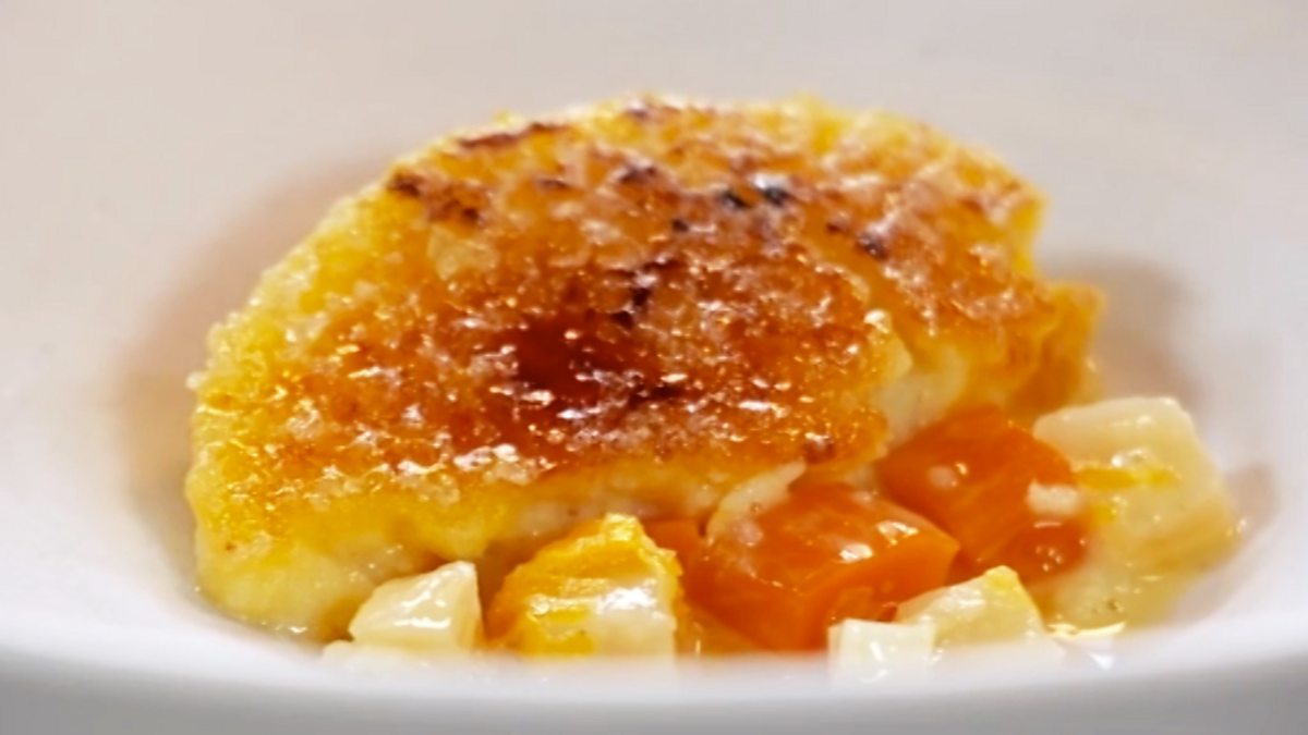 This twist on bread and butter pudding includes candied vegetables, carrot marmalade and celeriac ice cream.