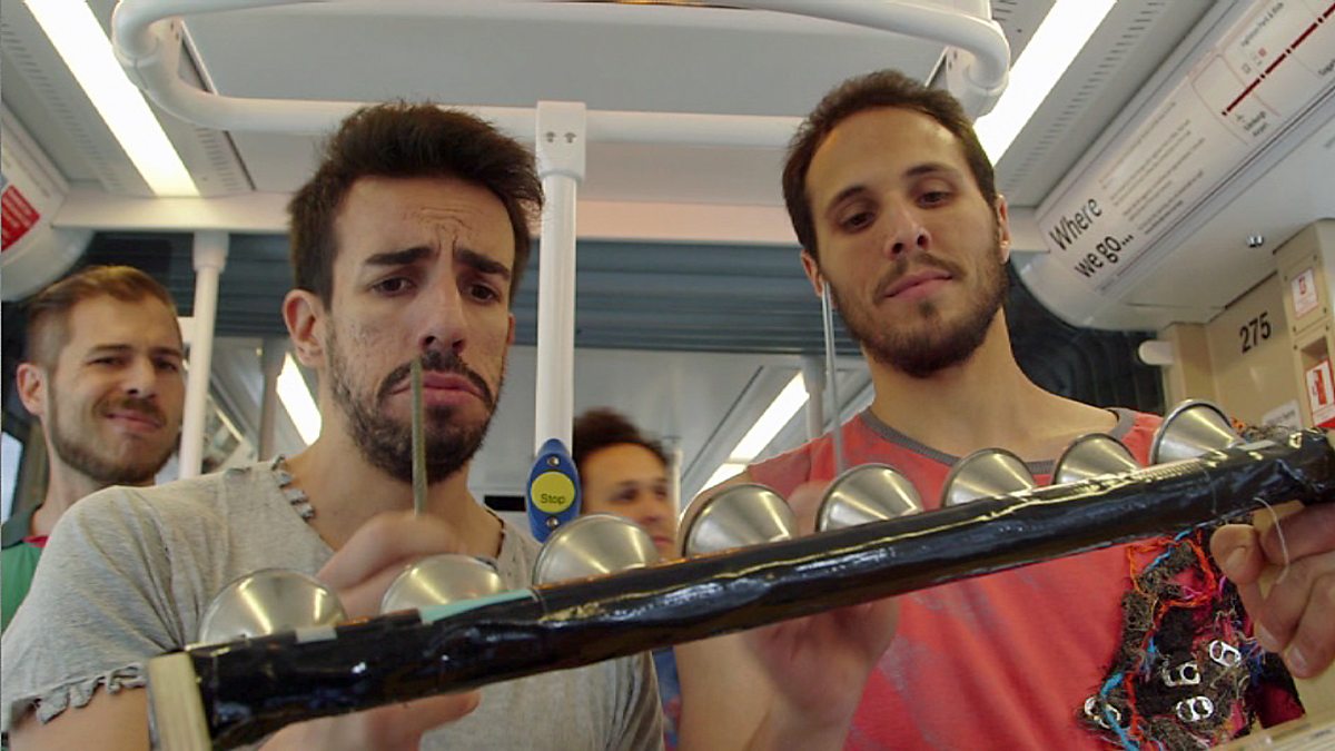 Portuguese percussion sensations Be-Dom take their show on to an Edinburgh tram.