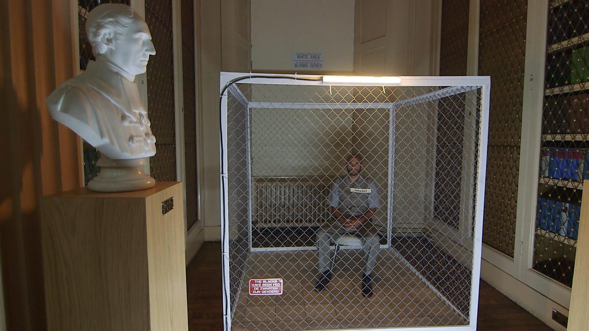 Installation from Exhibit B addressing Apartheid in South Africa.