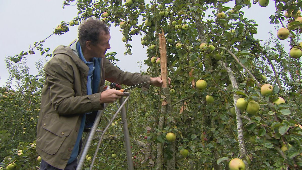Monty Don administers first aid to an apple tree that has sustained some damage in the wind. But all is not lost, following his pruning advice, the tree should recover well in the spring.