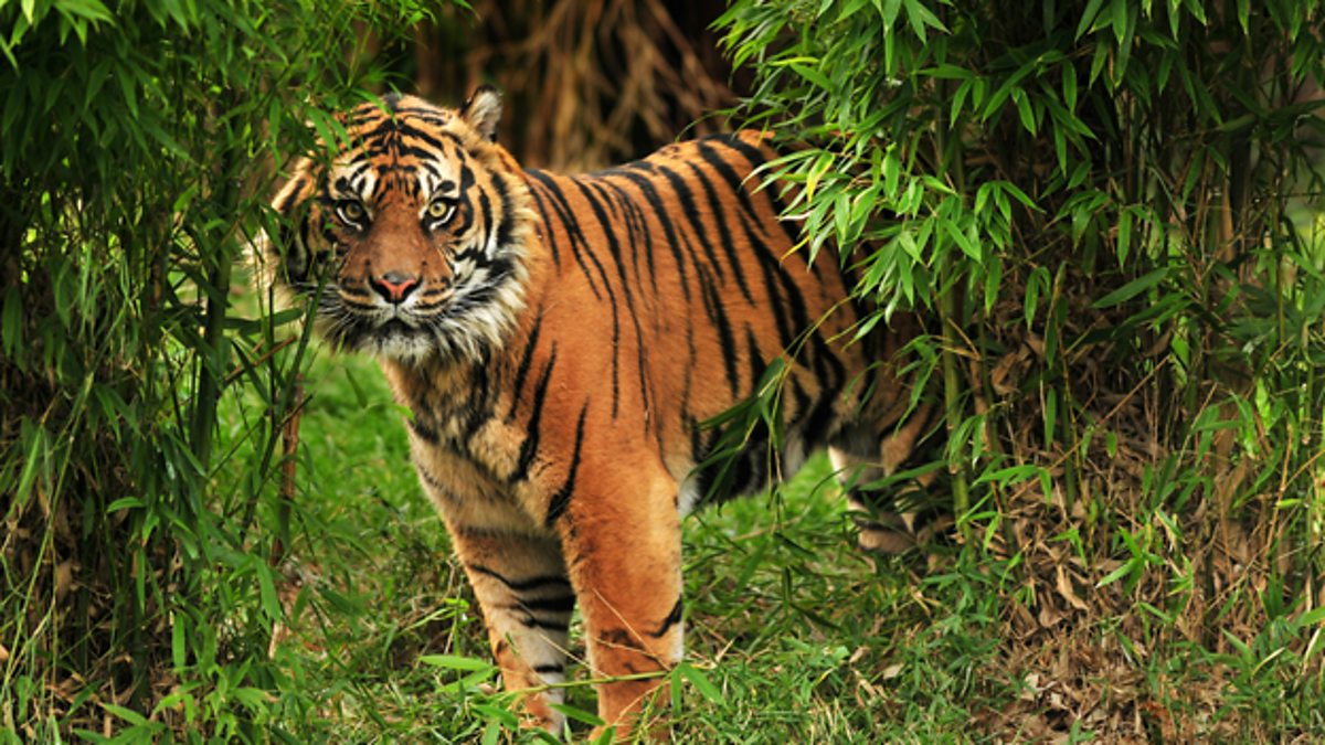 (Photo: Male Royal Bengal tiger staring towards the camera from inside the jungle. Credit: Shutterstock)