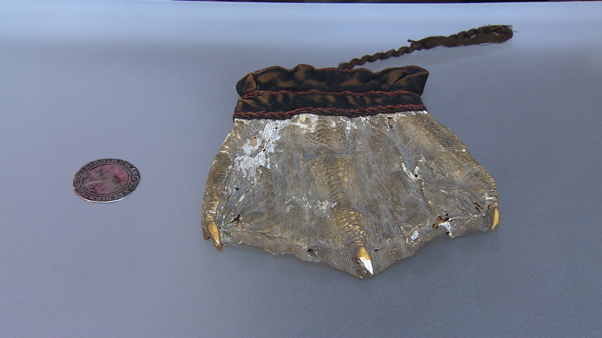 Hideous or historical? Fiona Bruce examines a Tudor purse made from a swan.