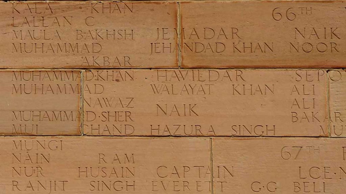 Picture: The names of Indian soldiers who died fighting during WWI on the India Gate monument, New Delhi, Credit: AFP/Getty Image