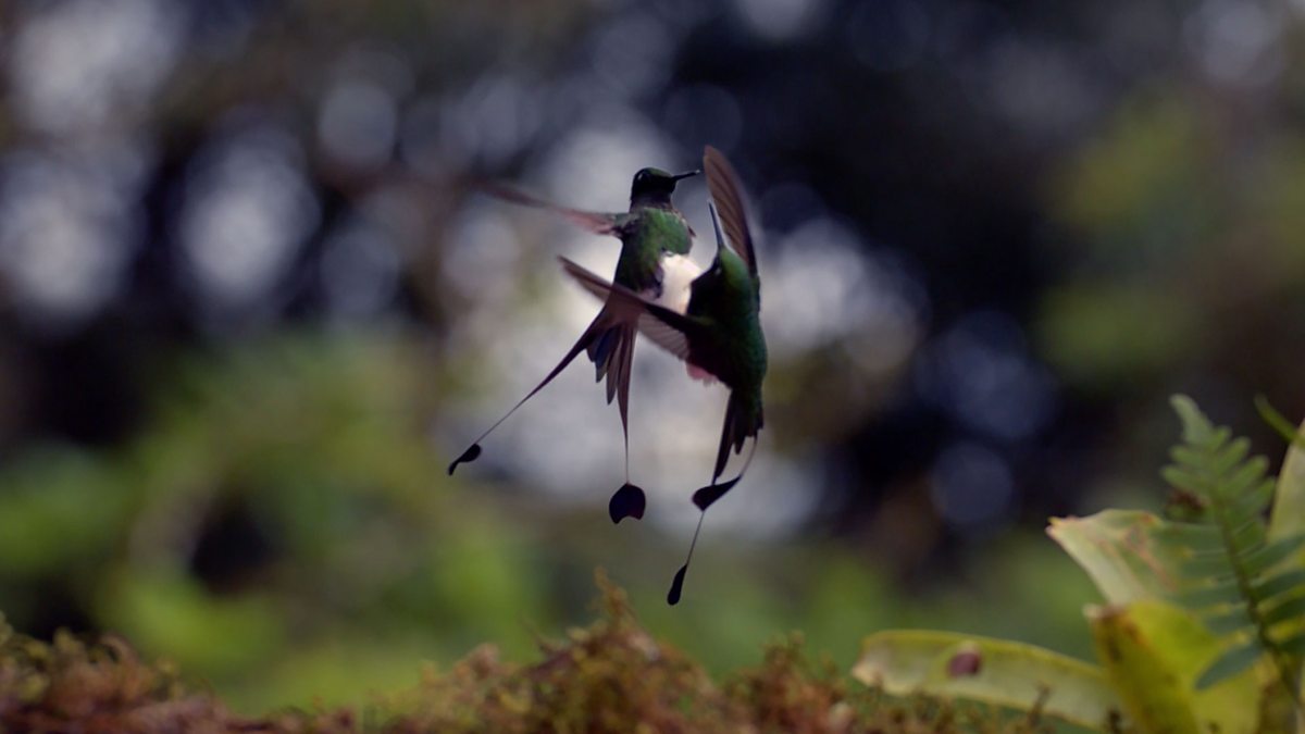 A booted racket-tail hummingbird is small enough to avoid most of the other competitors for flowers, but sometimes there is only one thing to do; fight.