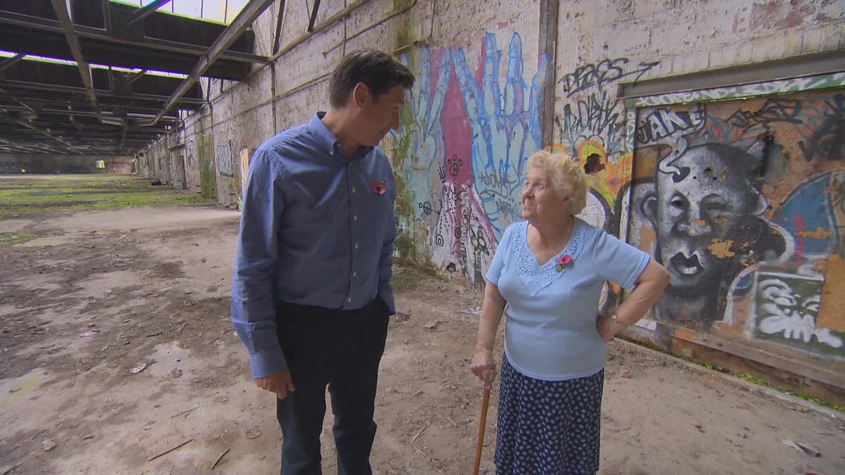 Seventy years after the Second World War a former munitions worker returns to the factory where she worked and recalls the day she narrowly escaped a German bombing raid.