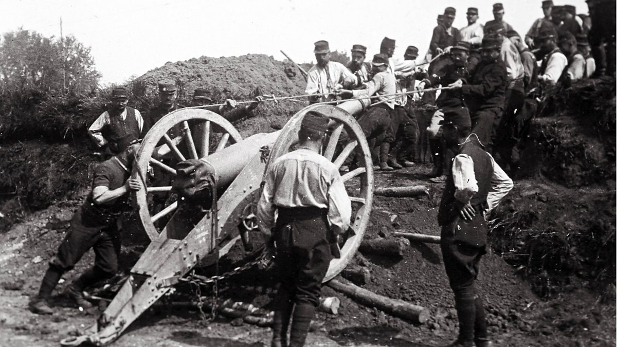(Photo: An undated archive picture shows French soldiers moving a 95 mm cannon, on the rear guard near the front, at unknown location in France, 1916 World War One)