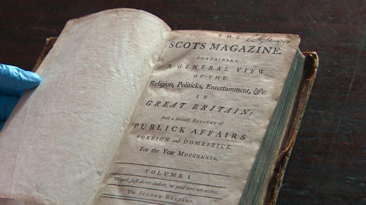 Dougie tells the story of the Scots magazine which is celebrating 275 years in print. It is thought to be the oldest magazine in the world. Early editions captured reports from the Battle of Culloden. Some of its famous writers have included Robert Burns and Sir Walter Scott.