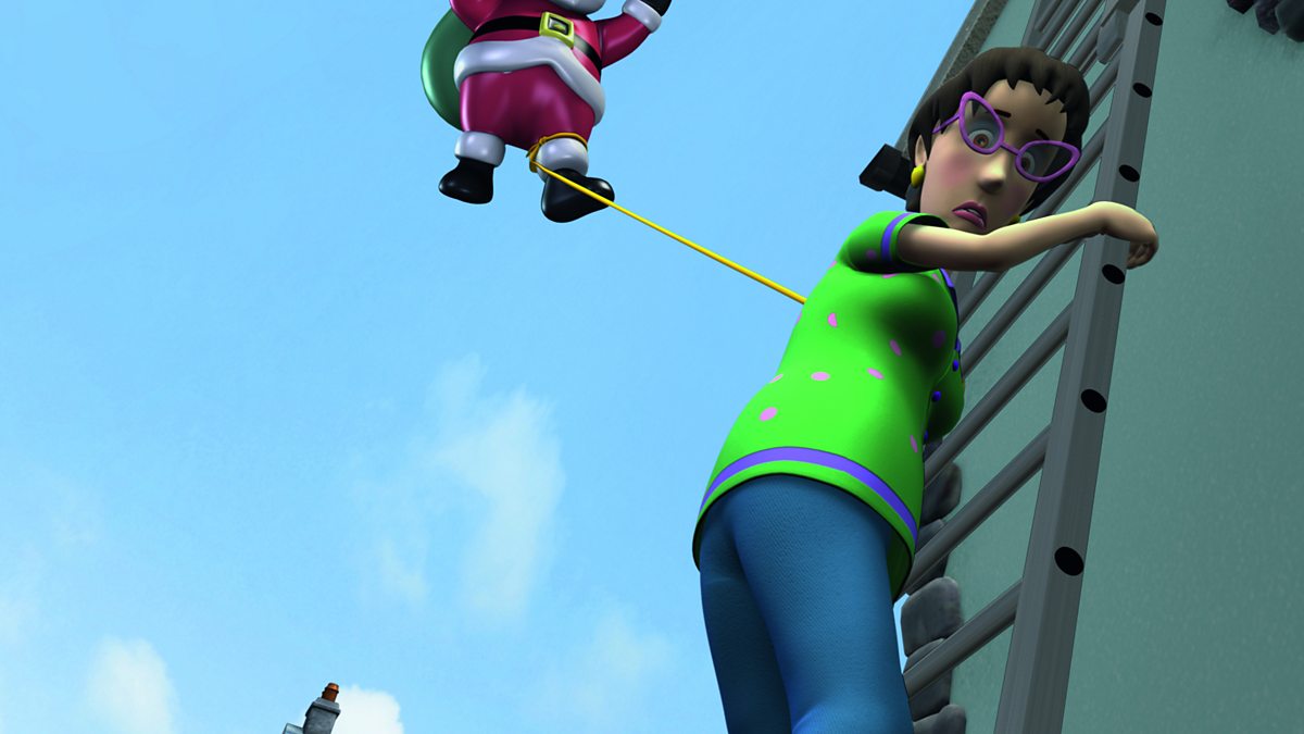 Yn groes i gyngor ei fam, mae Norman yn ceisio gosod addurn Siôn Corn ar y to. Norman convinces Dilys to place a blow-up Santa on the roof. But Santa is blown away and lands in the bay!