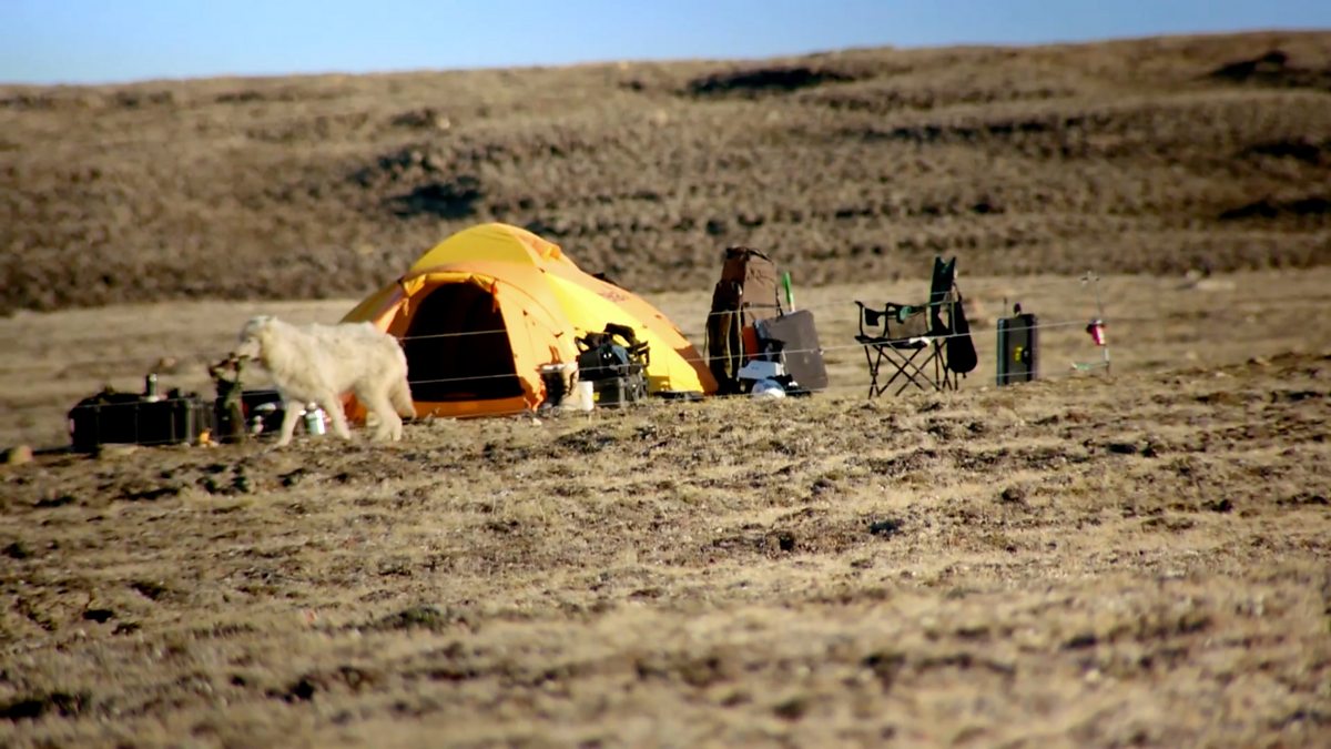 A camp stool gets abducted by a wolf.