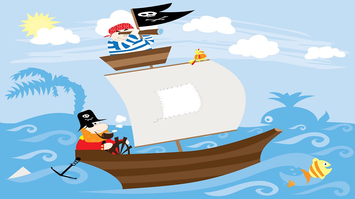 Key vocabulary: sea, land, sail, captain, crew, pirate, treasure, chest, map, telescope, parrot.