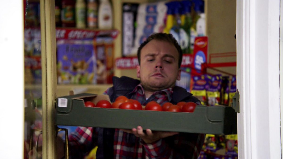 Leroy and Mrs Hussain get very close whilst arranging the tomatoes.