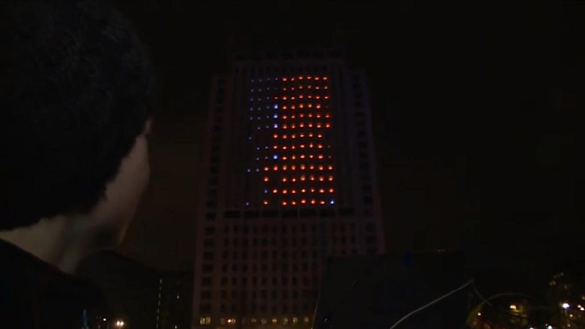 Using items found around the home, Danielle George hacks the Shell Centre on London's South Bank so a member of the studio audience can play a giant computer game on the windows.