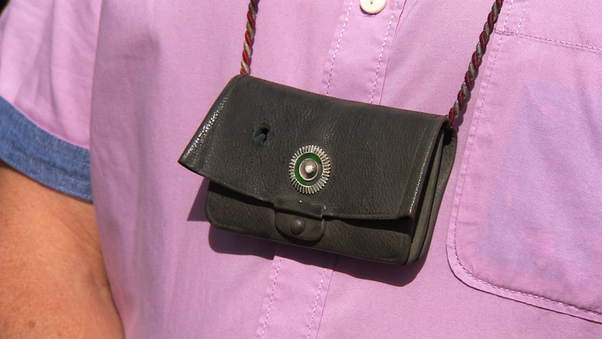 The neck purse that saved the life of a German soldier in the First World War.