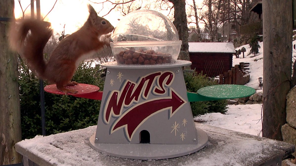 Watch to see how the red and grey squirrels get to grips with our Winterwatch Nut Machine