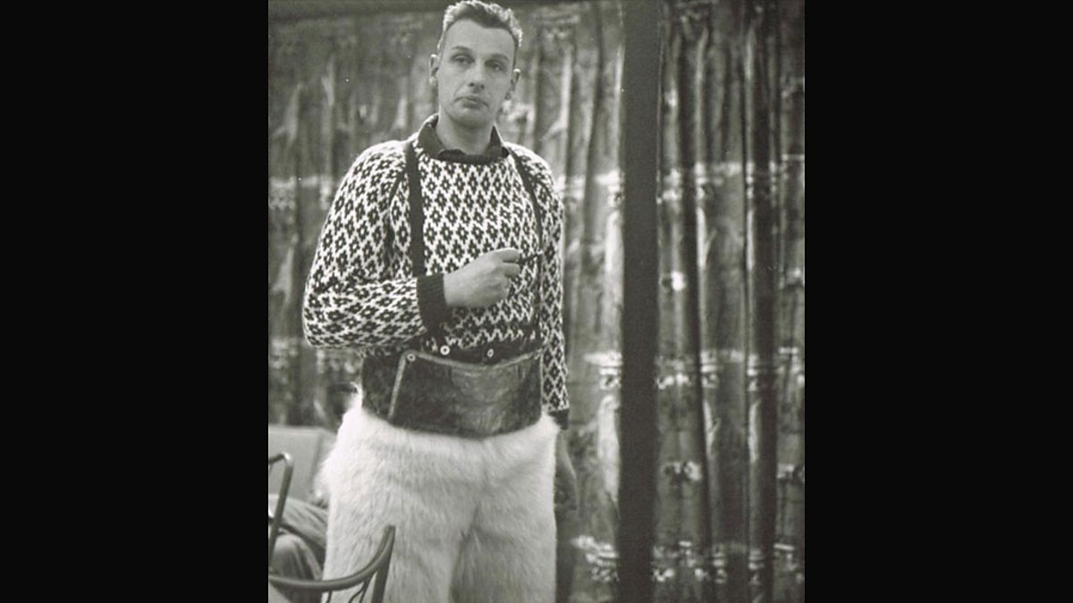 (Photo: Jens Zinglersen in polar bear trousers at Thule airbase. Credit: Private collection)