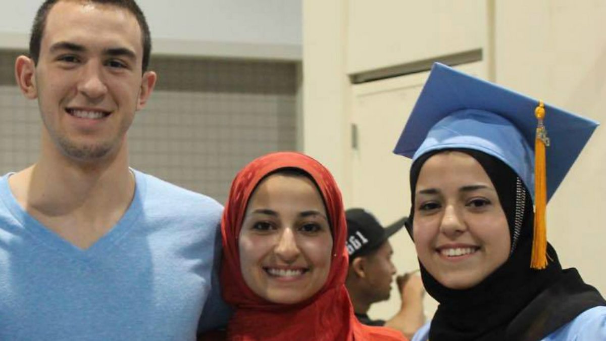 (Photo: Deah Barakat, his wife Yusor Mohammad Abu-Salha and her sister Razan Mohammad Abu-Salha, from Our Three Winners Facebook page).